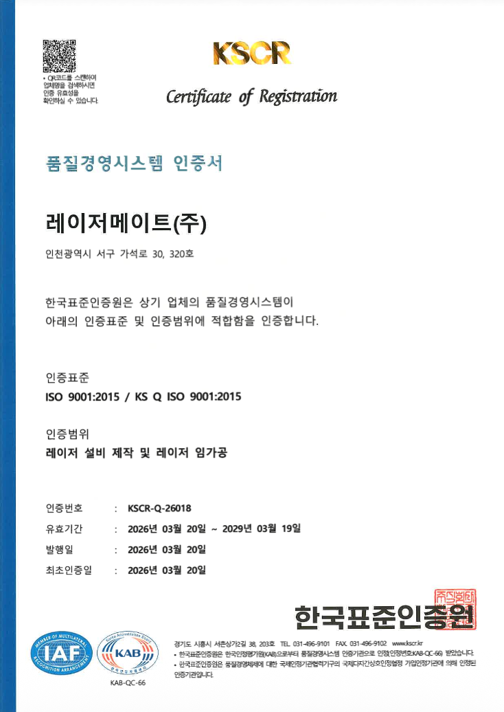 레이저메이트(주)의 특허 및 인증서 현황을 안내합니다.